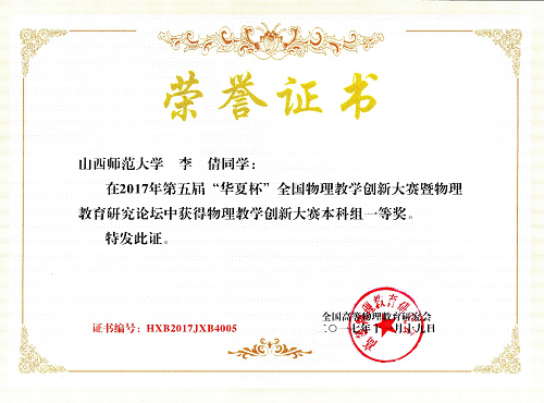2017年11月17-19日,由全国高等物理教育研究会主办、湖南师范大学与湖南省物理学会承办的第五届“华夏杯”全国物理教学创新大赛在湖南师范大学举行。来自华东师范大学、华中师范大学、东北师范大学、陕西师范大学、西南大学、华南师范大学和各省属师范大学等47所院校的本科生、研究生和教师共395人参加了此次比赛。