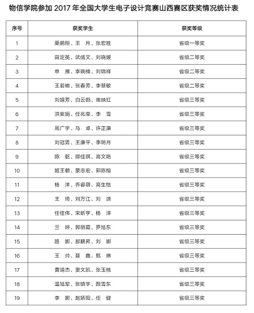 公司学子在2017年全国老员工电子设计竞赛山西赛区比赛中再创佳绩