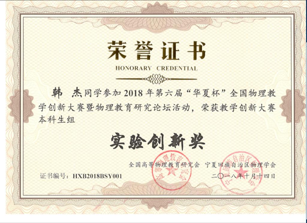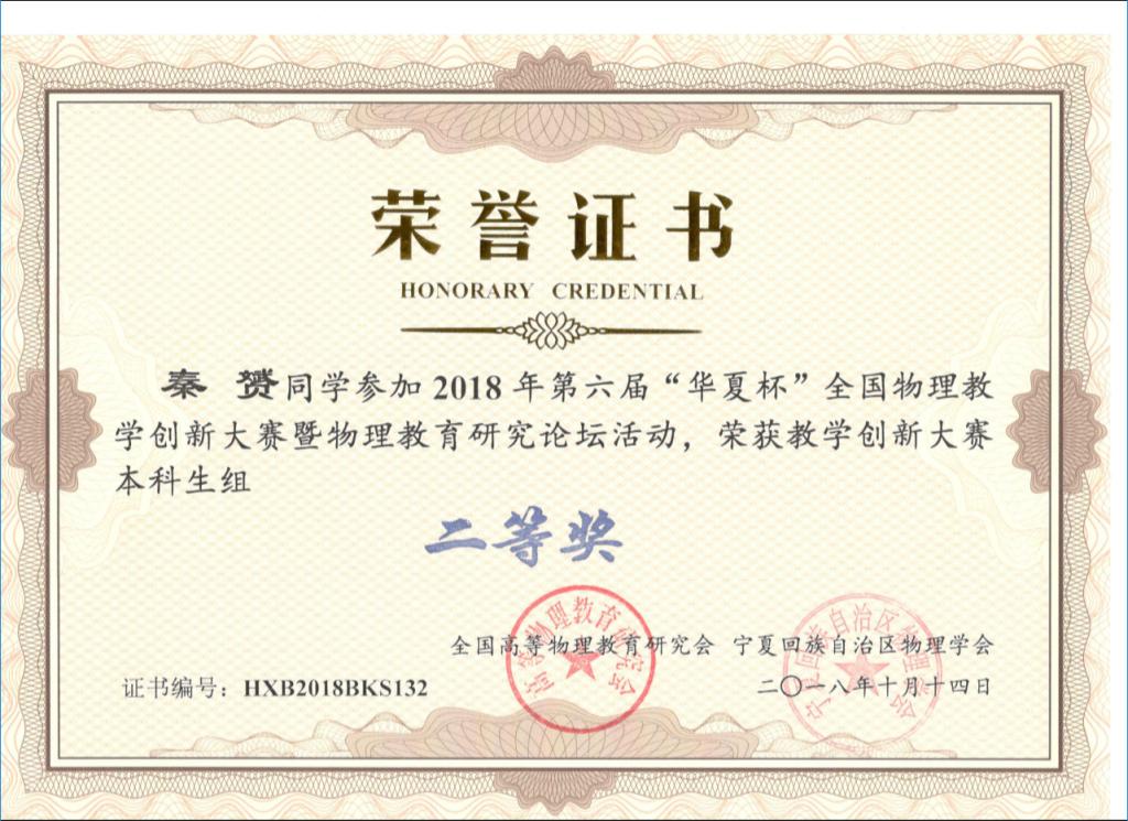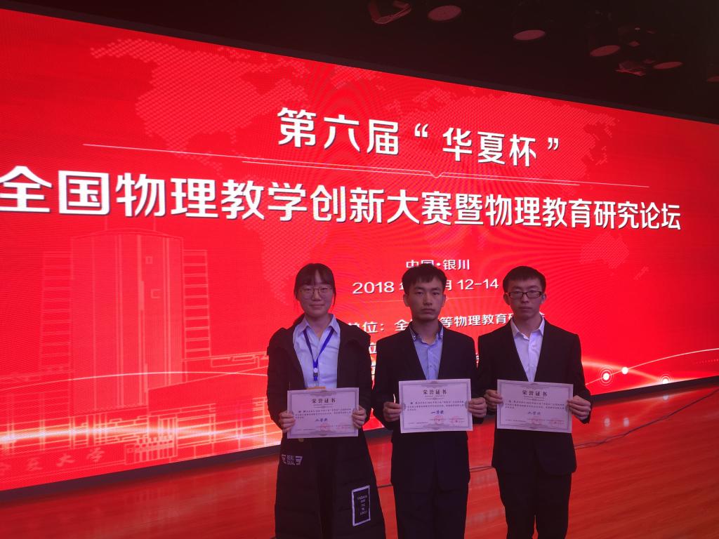 2018年10月13日—14日,由全国高等物理教育研究会主办的第六届“华夏杯”全国物理教学创新大赛暨物理教育研究论坛在宁夏大学举行,共有来自北师大、华东师大、东北师大、西南大学等全国57所高校的本科生、研究生和来自28个省市区的51所中学物理教师共467人参加了本次赛事。公司3名本科生在公司党委副书记王玮、院团委副书记岳文慧和张中才老师的带领下参加了本次赛事,本次比赛以王玮副书记为领队、张中才老师为总指导。在本次比赛中,公司选手精心准备、发挥出色,最终荣获国家级教学一等奖1项、二等奖2项,国家级实验创新奖2项,张中才等3位教师荣获“优秀指导教师奖”,彰显了公司学子扎实的教学基本功和突出的创新能力,为公司公司争得了荣誉,也为即将到来的本科教学工作审核评估献上了一份厚礼。