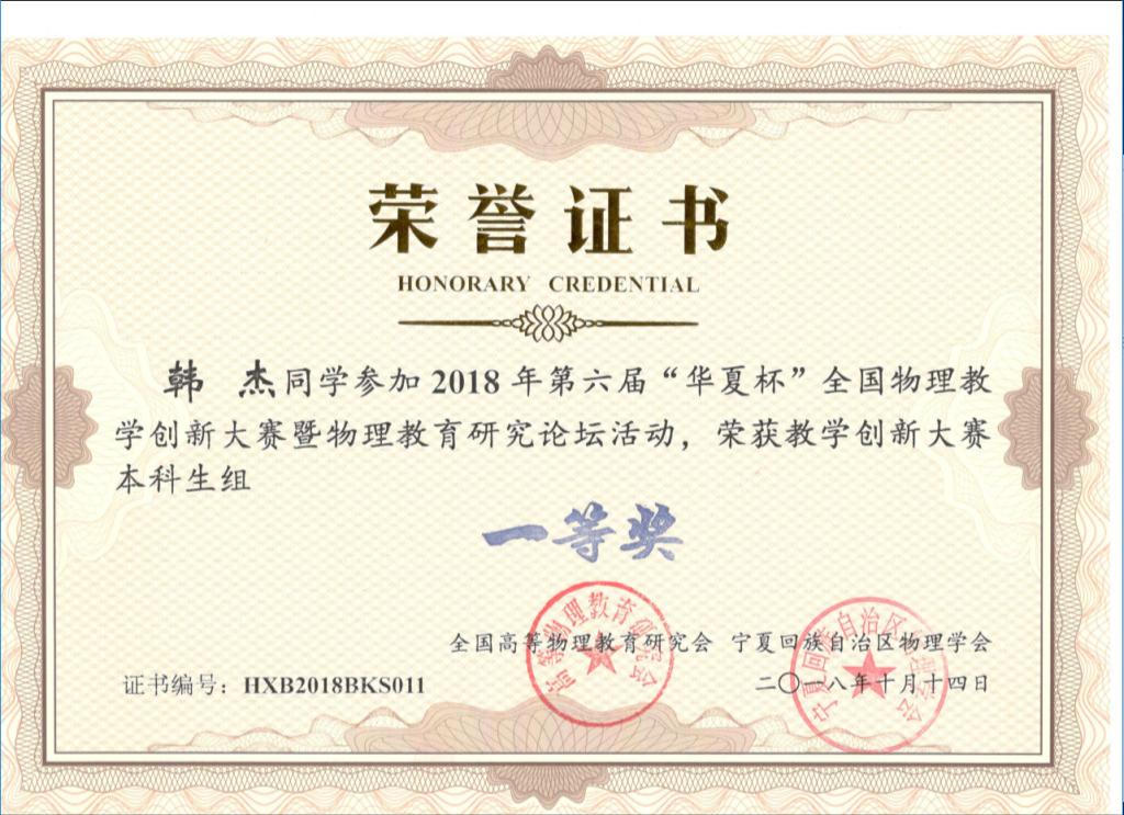 (获奖证书)