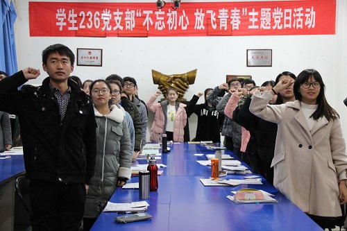 本次活动以宣传贯彻落实十九大精神为背景,围绕“不忘初心,放飞青春”的主题,通过收集初心、畅聊初心、重温入党誓词等活动,提高支部党员对中国共产党的认识。全体党员在重温初心、感悟初心、坚定初心中,提高了思想境界,增强了支部党员的使命感与凝聚力。