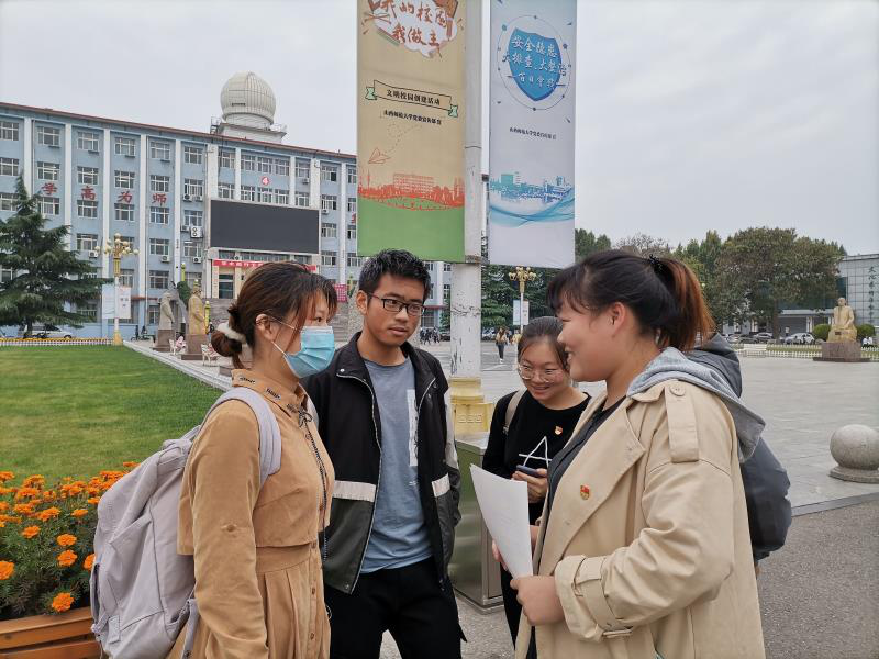 随后,大家以纪念中国人民抗日战争暨世界反法西斯战争胜利75周年为契机,以“铭记革命历史,传承红色基因”为主题,在巨人广场,向来往的人们讲解了抗日战争那段艰苦卓绝、波澜壮阔的峥嵘岁月,唤醒大家的红色记忆,使大家深切感受到了革命先辈们为党和国家牺牲一切的崇高精神。