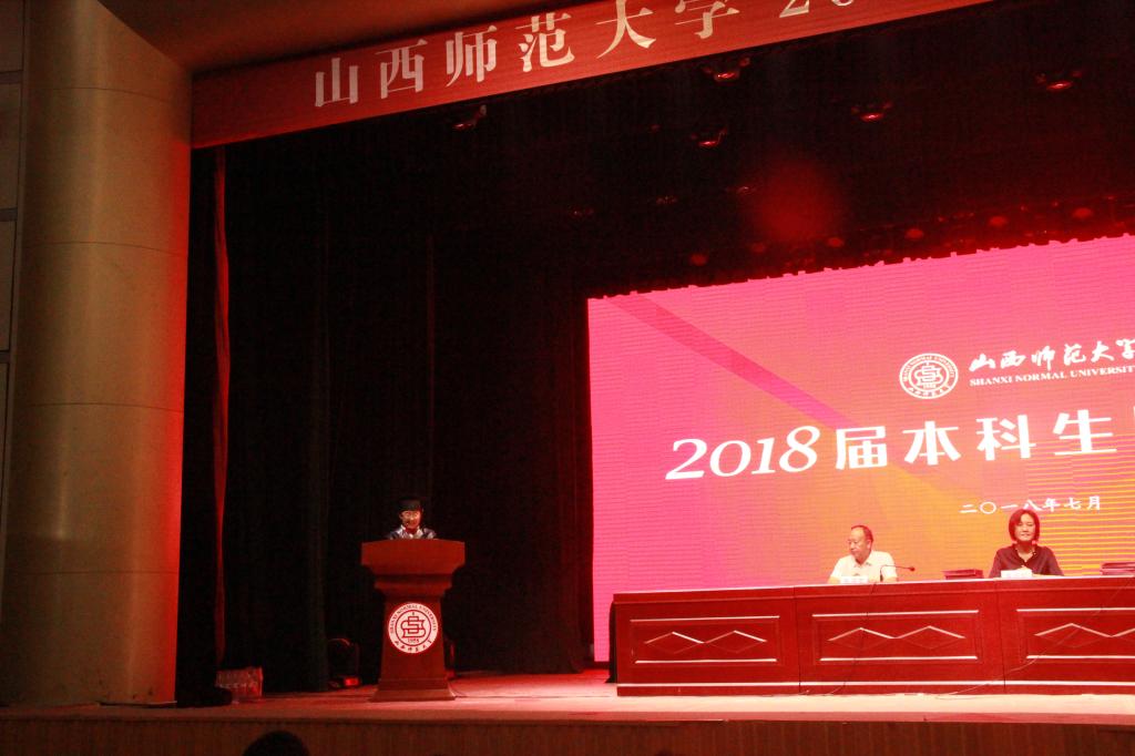 5项国家级竞赛荣誉获得者,1401班李倩代表全体毕业生作了发言。她对母校的包容、老师的辛勤奉献、父母细致无私的爱表示由衷的感谢,在毕业之际为母校送上深深的祝福,并表示毕业后一定会继续发扬236精神和师大精神,在新的岗位上做出新的成绩。