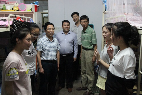 院领导的到来受到了新生们的热烈欢迎,公司党委书记吴文国亲切询问新生对宿舍环境、居住条件是否适应,并对员工的家庭情况做了相应的了解。他指出,员工宿舍的环境和条件将直接影响到员工的学习和生活,并向同学们表示有困难一定要及时向老师反映,公司领导会尽最大的努力去解决和完善。聆听了院领导的亲切教诲,新生们原本的不适感便放松了许多。