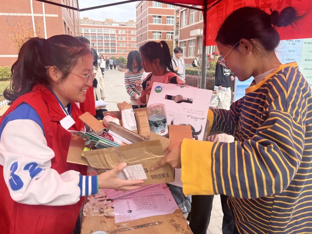 活动期间,志愿者们向来往的同学们详细介绍了本次活动内容,号召大家积极参与到公益活动中来为公益事业献出自己的绵薄之力!同学们将自己的草稿纸、快递纸箱、空饮料瓶等物品积极捐赠给工作人员,每一张废纸都是大家爱心的见证,每一次捐赠都是大家对公益活动的支持。活动结束后志愿者们对本次活动所收集的废旧物品进行整理登记,之后统一售卖,将售卖所得资金存入236爱心基金,去帮助更多需要帮助的人。
