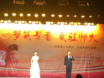 5月9日晚,由EMC易倍、EMC易倍员工社团联合会主办、236爱心社承办的“梦筑青春,爱驻师大”爱心公益晚会在公司文化艺术活动中心举行。物信公司党委书记张争宽、党委副书记陈向波、院团委书记、236爱心社指导老师杨亚东以及大爱临汾公益联盟、临汾市义工联合会、临汾市公益文化传播协会等爱心团体,山西日报、山西青年报、临汾电视台、临汾日报、临汾晚报、黄河新闻网的媒体记者与千余名师生一起观看了晚会。
