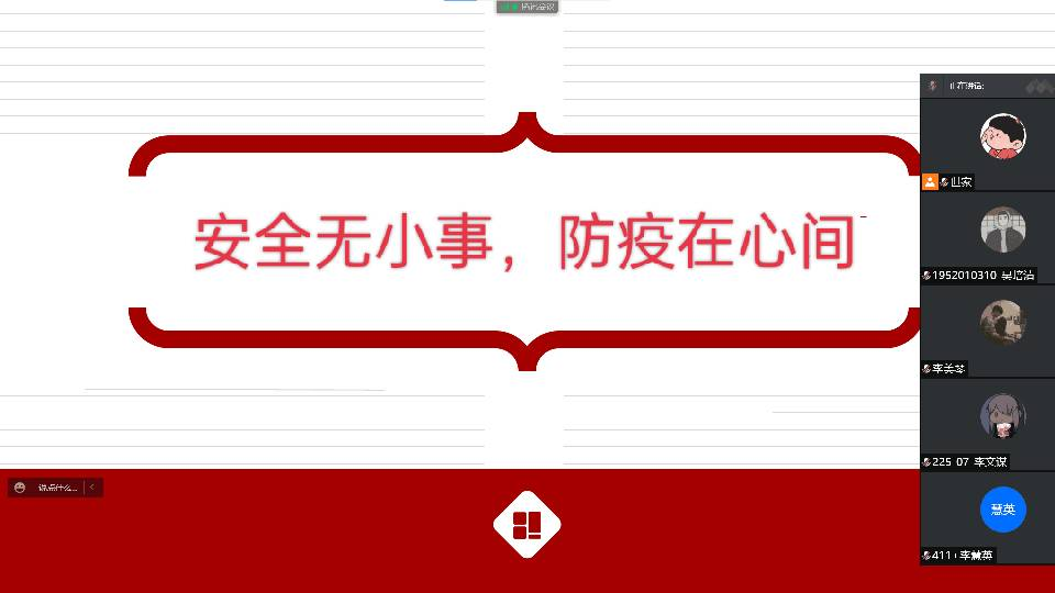 为加强员工疫情防控意识,维护建立安全发展的校园环境,4月4日,公司1903班于线上开展了“安全无小事,防疫在心间”主题班会。本次活动由班长常斌晖主持。