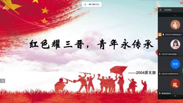 2104班团支书向同学们介绍了党的光辉历程、传达了党的奋斗精神,鼓励同学们认真学习党的路线方针政策,传承艰苦奋斗、百折不挠的精神,努力成为优秀的社会主义接班人。研究生2021级团支部线上观看“学党史、强信念、跟党走——红色耀三晋青年永传承”清明祭英烈活动,鼓励同学们做到学史明理、学史增信、学史崇德、学史力行。
