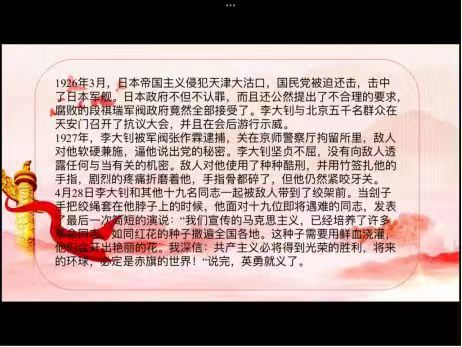 2106班团支书组织同学们聆听了《传承英烈精神,凝聚前行力量》微团课,接受了一次深刻的党史学习教育。2208班团支书通过观看历史影片,带领同学们重温了前辈们的感人事迹。2204班团支书组织同学们观看红色故事的短视频,开展了“猜猜我是谁”小游戏,让同学们畅想未来,大声说出自己的理想,呼吁同学们争做新时代青年。