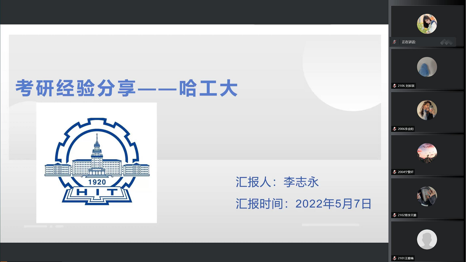 为了提高同学们考研的积极性,帮助同学们掌握科学备考方法,5月7日,公司员工会学创部在南区三号楼3104教室举办了“青春向党,研途启航”2022考研经验交流会。此次交流会邀请了考研至哈尔滨工业大学的李永志和考研至山东大学的徐杰为同学们分享学习方法和经验,为准备考研的同学答疑解惑。活动由学创部志愿者肖艳主持。