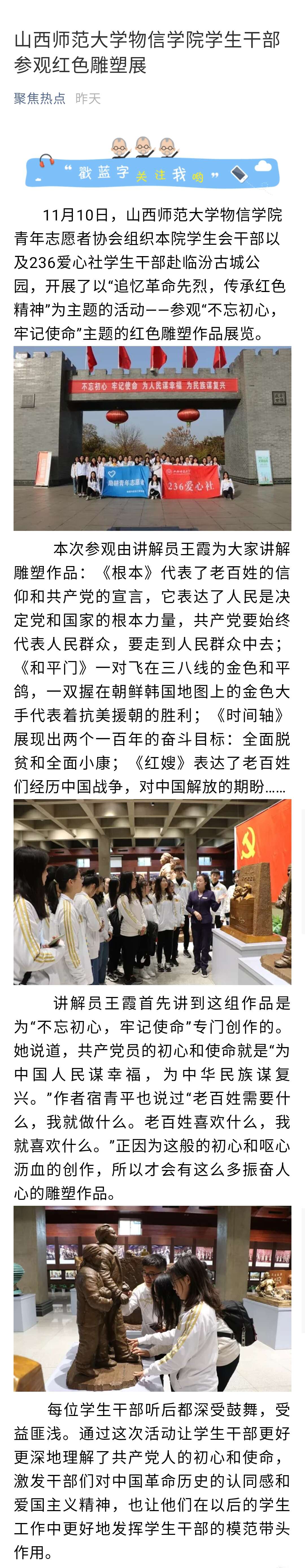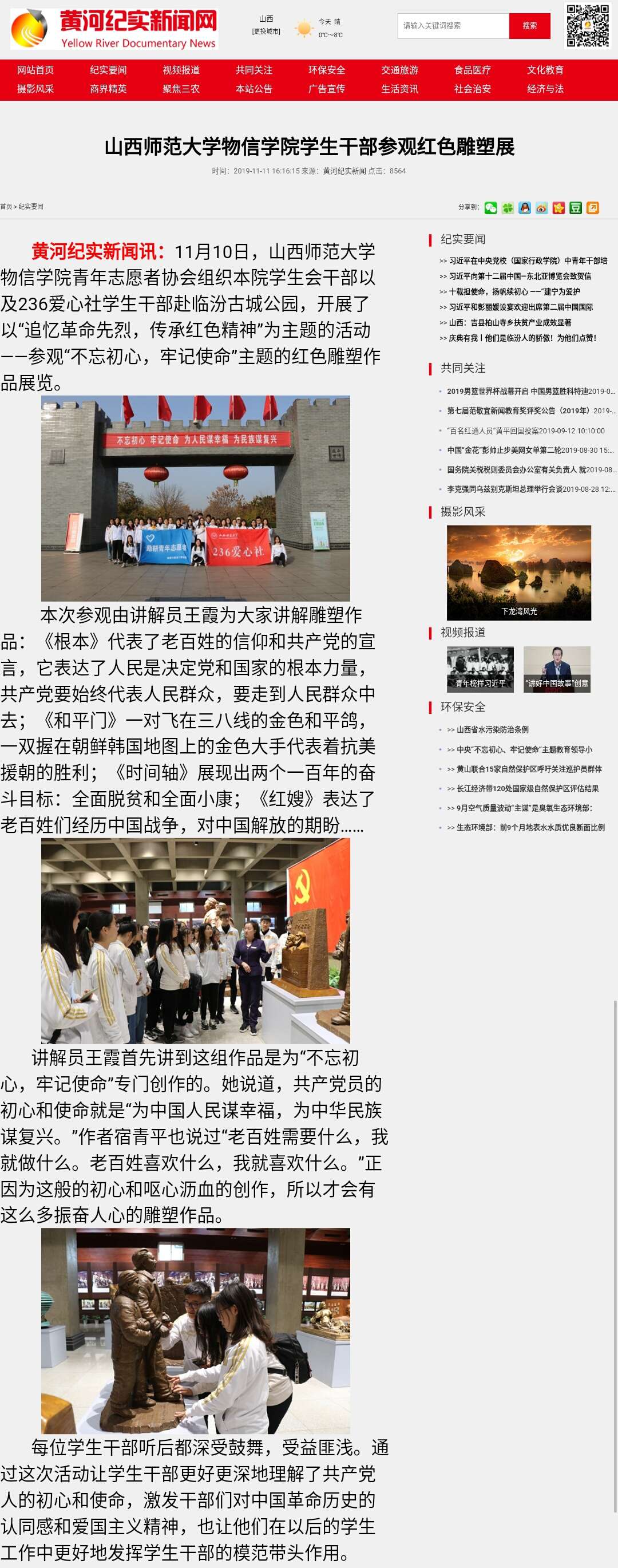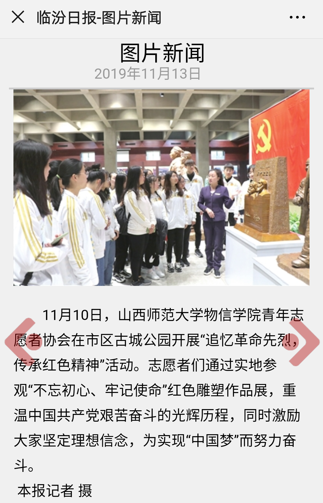 黄河纪实新闻网、临汾日报、聚焦热点公众号同步报道公司员工干部参观红色雕塑展