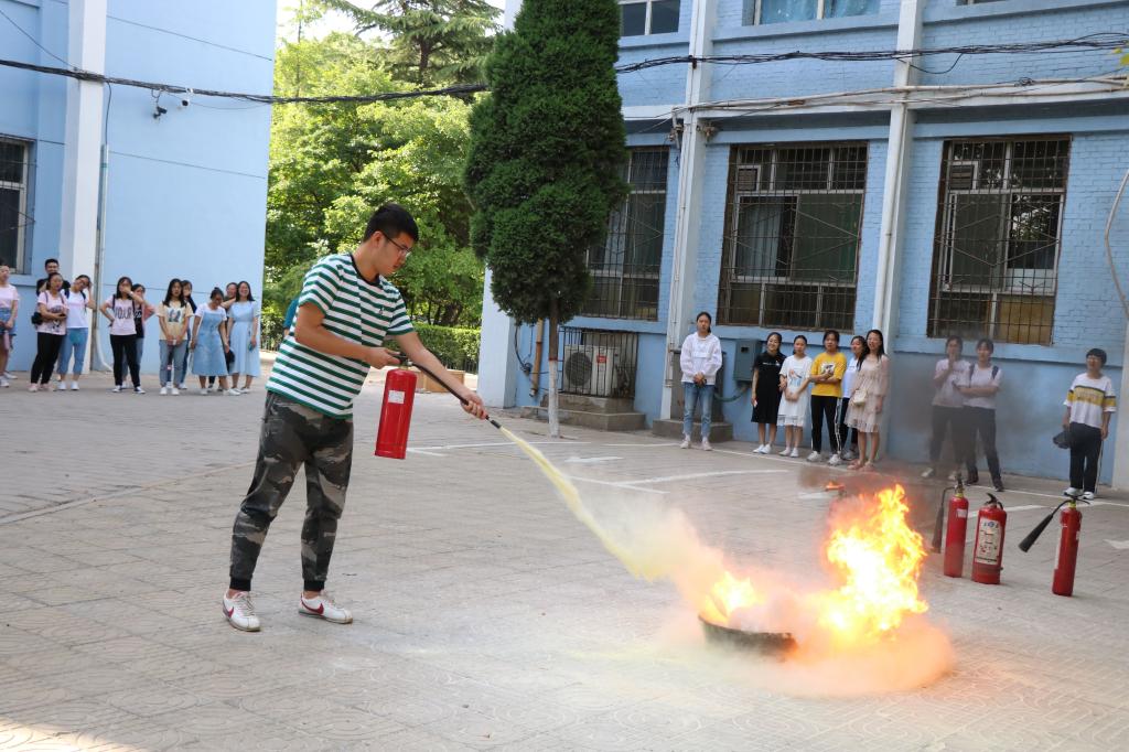 讲座结束后,公司党委副书记王玮和专职辅导员马丽娜在校保卫处的配合指导下组织大一至大三年级的部分班级进行了应急疏散和灭火演练。随着警报声响起,分布在四号教学楼教室和实验室的同学们迅速组织撤离,按照事先学习的疏散要求,快速有序地前往巨人广场安全集合区域,清点人数,整个过程井然有序。两次演练后,公司党委副书记王玮结合演练过程进行了点评,强调同学们面对突发情况要沉着冷静应对,以确保人身安全为第一位,党员、员工干部要在危急时刻保持冷静头脑、保持先进本色,肩负责任、指挥到位!在灭火演练中,保卫处消防科张科长向员工们进行了消防知识现场教学,详细讲解了不同类型灭火器的使用方法,并现场进行演示,还邀请了部分同学进行了灭火体验。