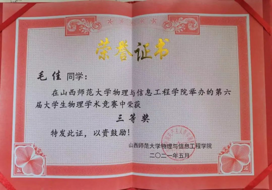 “功不唐捐,玉汝于成”。在青春这条道路上,我们背负着希望,承载着梦想与热爱,勇往直前,最终抵达自己想要的远方。祝愿毛佳学姐秉持初心,不改热爱,也祝愿毛佳学姐的工作一帆风顺,前程似锦。(文/2306班 薛妙青)
