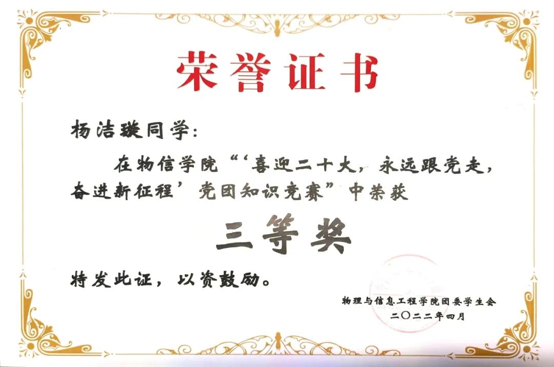 在EMC易倍“‘喜迎二十大,永远跟党走,奋进新征程’党团知识竞赛”获三等奖