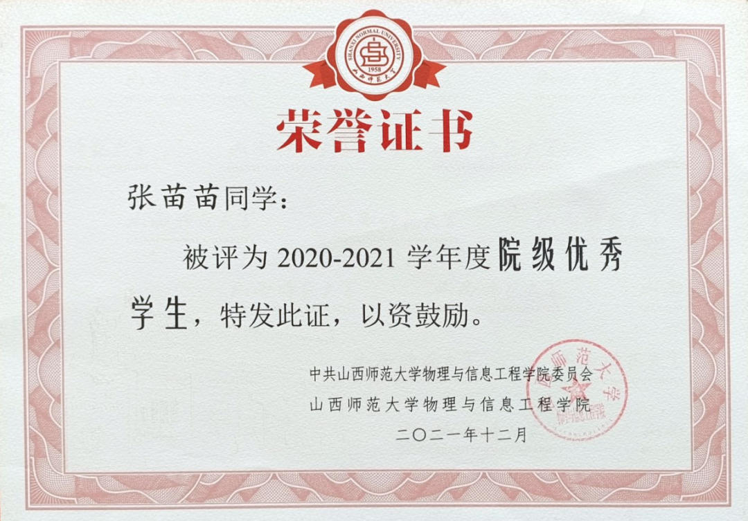 自从有了保研的志向,张苗苗便开始为此而努力奋斗。她深知“宝剑锋从磨砺出,梅花香自苦寒来”,在并在大学的这几年里做出了非常多的付出。