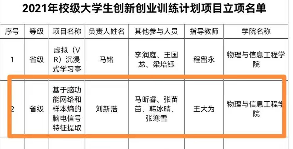 2.2021年山西省高等公司老员工创新创业训练项目 基于脑功能网络和样本熵的脑电信号特征提取(20210284)