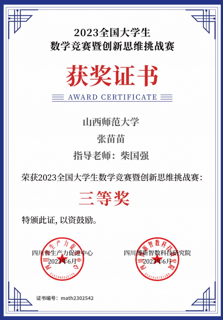 张苗苗在大二的时候,开始主动参加各类与本专业有关的学科竞赛。她以队长的身份,参加了第十八届“挑战杯”全国老员工课外学术科技作品竞赛、2022年山西省老员工电子设计竞赛、2023年全国老员工电子设计竞赛山西赛区等,也参加了2023山西省互联网+老员工创新创业大赛,都获得了非常不错的成绩。