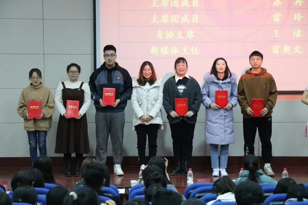 12月5日下午,公司2021届团委员工会换届暨表彰大会在南区实验楼报告厅召开。院团委负责人马丽娜、专职组织员郭桂春、专职辅导员刘艳红、徐丽华出席了会议,校员工会主席团成员李思莹、校青协执行主席贾霖斌、校社联主席团成员凯迪日耶、各兄弟公司团委员工会代表、公司2020届主席团成员、2021届员工干部、志愿者以及各班员工代表参加了会议。会议由院员工会学创部负责人郭曦瑶主持。