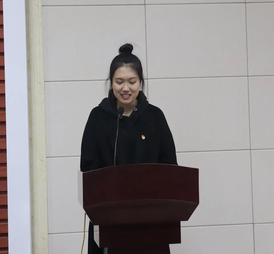 2021届团委(员工)副书记张婧榕和员工会主席团代表郭晨霞分别进行了表态发言,表明了会一棒接着一棒传、一任接着一任干,继续推动公司团学工作更好发展的决心,同时也表达了对老师辛苦栽培的感激之情,对上一届团学干部中即将考研的学长学姐们的真切祝福。