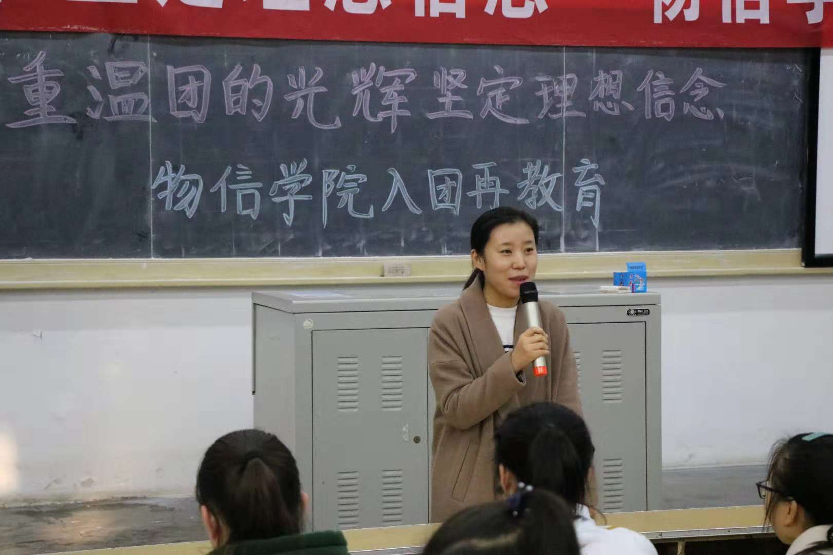 院团委副书记岳文慧作了讲话。她强调了新生入团再教育的必要性,带领新生了解了理想和信念的实质含义,明确了理想和信念之间的关系。她希望一年级团员既能树立远大理想,坚定马克思主义信仰,坚定走中国特色社会主义的信念,坚定实现中华民族伟大复兴的信心;又能树立与时代主题同心同向的个人理想,坚定成长成才的信念,坚定成长为优秀老员工的信心,充分利用大学资源,合理规划自己的生活,努力学习,提升自我,真正成为志存高远的新时代老员工。
