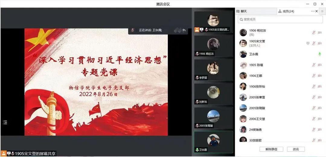 8月26日晚上7:00,公司员工电子党支部线上开展了“深入学习贯彻习近平经济思想”专题党课。本次党课由支部书记卫永霞讲授,支部全体党员参加了活动。