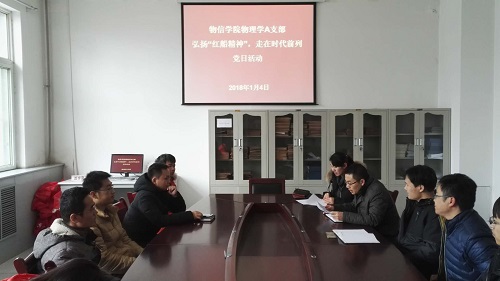 1月4日下午15:00,公司物理学A支部于四号楼一层会议室举办了“弘扬‘红船精神’走在时代前列”主题党日活动。支部全体党员参加了这次活动,活动由支部书记李俊生主持。