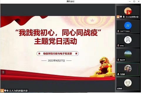 4月27日晚上19:00,公司行政与电子党支部在腾讯会议开展了“我践我初心,同心同战疫”主题党日活动。支部全体党员参加了活动。本次活动由支部书记王大为主持。