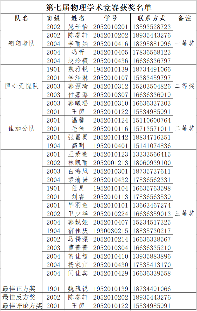 附:公司第七届物理学术竞赛获奖名单(文/2106班 任超宇 摄/2102班 杜鑫雨 2102班 李天雅)