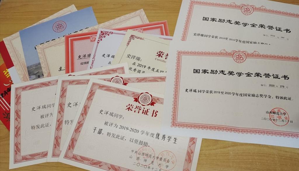 荣获2019-2020国家励志奖学金和学年一等奖学金