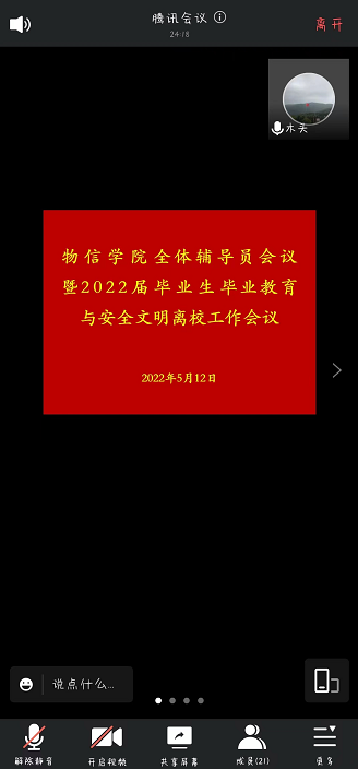 5月12日下午,公司以线上会议的形式召开了辅导员工作会议暨2022届毕业生毕业教育与安全文明离校工作会议,公司党委副书记颜志刚出席会议,全体辅导员参加了会议。会议由公司党委副书记颜志刚主持。