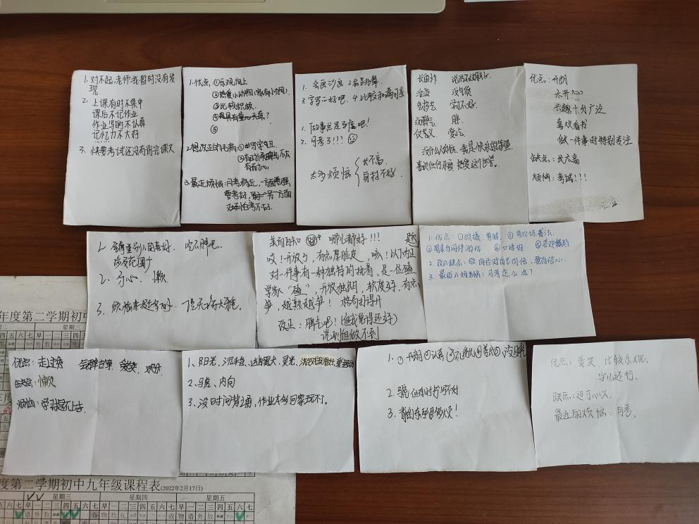 每周三的社团时间是员工接近两个小时的自习时间,每到放学前十分钟,整个教室便开始躁动,员工的心已经飘离了课本。于是,第三周,我带同学们利用这十分钟开展了一个心理小活动,活动前我先带头夸了夸几位在班里比较安静的同学,鼓励大家去客观地发现自己的优点和不足,写下自己的烦恼,同学们很配合,有的同学把纸条拿回家,写好了第二天又塞到我的烦恼箱里。谁说少年不识愁滋味啊,看了大家的烦恼,我也百感交集,我决定做点什么。第四周,同样是那十分钟,我把我酝酿了一周的信读给大家听,大家听得很认真,读完以后,员工要求再谈一会儿,那节自习,我们推迟下课十五分钟进行了交流。最后是怕大家回家太晚,我主动结束了那次的谈心。有心才能同行,有爱才能共鸣。那次经历,拉近了我和员工的距离,也让我深刻认识到,教师是用自己的人格影响员工的人格的职业,今后要对自己严加要求,不仅要学为人师,更要行为世范。