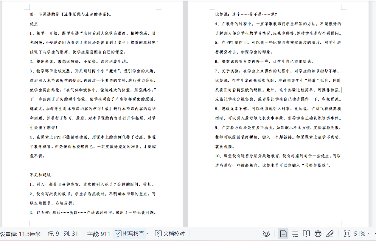 后来陆陆续续我有了一些讲课机会,我在一次次的进步中也得到了老师的表扬和认可,但第一节新课讲授依然让我感触颇深。实习的第四周,于老师让我试讲《流体压强与流速的关系》,老师耐心指导我,为我指出在备课过程中存在的问题,帮我准备实验器材。虽然之前在公司也讲过很多次课,但是第一次下面坐满员工,还有指导老师和实习的小伙伴听课,我很紧张,晚上没睡好,早上六点半就到办公室准备了,第一次见六班的孩子们,怕大家不适应我,不配合我,就和大家开了一个小玩笑活跃气氛,这个玩笑拉近了我们之间的距离,大家笑的时候我瞬间不紧张了。第一节课,得到了于老师和韩杰老师认可,课下我们三个人仔细讨论,两位老师为我提出了很多宝贵的教学实战经验,非常感谢他们的悉心教导。