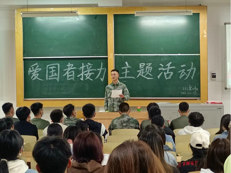 为了让同学们对军旅生活有更加深入的了解,激发同学们的爱国热情,提升同学们的民族自信心和自豪感。值此国庆佳节, 236爱心社于10月3日晚在南区5号楼5108教室举办了“爱国者接力”主题活动。