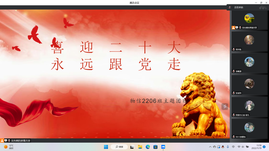 2208班团支书组织同学们共同观看学习了人民日报于2022年10月19日发布的中国共产党国际形象网宣片《CPC》,回顾了中国共产党自成立以来走过的路,深刻感受到中国共产党的伟大。2204班和2206班团支书为大家播放了有关党的二十大代表受访视频,加深了大家对党的二十大的了解。