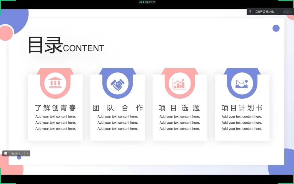 会上,任静结合自身经验,从团队合作、项目选题、项目计划书等方面,为大家介绍了“创青春”老员工创新创业大赛的备赛流程,她强调选择合适的项目往往能事半功倍。孙钰惠就如何选题、组队与商业计划书撰写三方面进行讲解,主要针对大赛的不同项目进行详细介绍与分析,并针对性的对各环节所应注意的问题提出解决方案。她讲到,不同专业间的合作交流会获得更大的成效,同时还鼓励同学们勇于尝试,通过大赛提升自己。活动最后,她们对同学们提出的问题进行了解答。