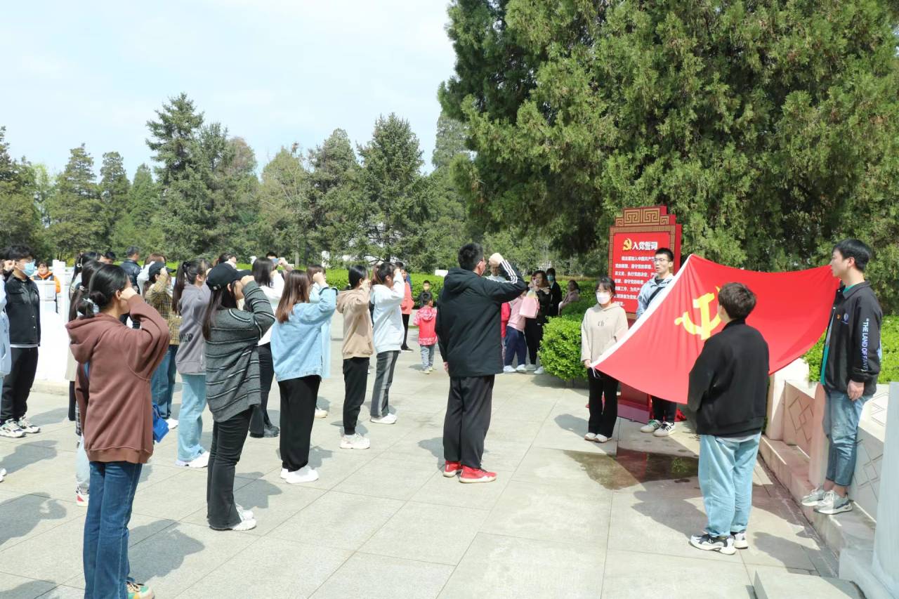 活动在庄严肃穆的气氛中进行,在革命烈士纪念碑前,全体同志怀着无比崇敬的心情,深刻悼念为了民族独立和人民解放而英勇牺牲的革命先烈,向在太原解放战争中牺牲的革命烈士鞠躬致敬,集体默哀。支部党员张璐璇同志为大家讲述了烈士陵园的革命历史背景,感受党的光辉历程和党的信仰力量。活动最后,支部党员糜昊带领全体党员同志面向党旗郑重宣誓,深刻感悟共产党员的初心使命。