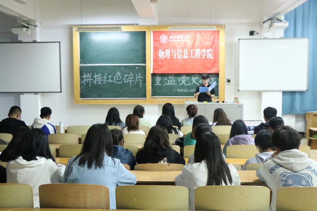 为加强对员工的爱国主义教育,促进同学们对党的光荣历史和丰功伟绩的了解,树立爱国主义情怀,5月3日晚,院团委办公室在南区五号楼5108教室举行“拼接红色碎片,重温党史之魂”主题活动。本次活动由团委办公室袁凡主持。