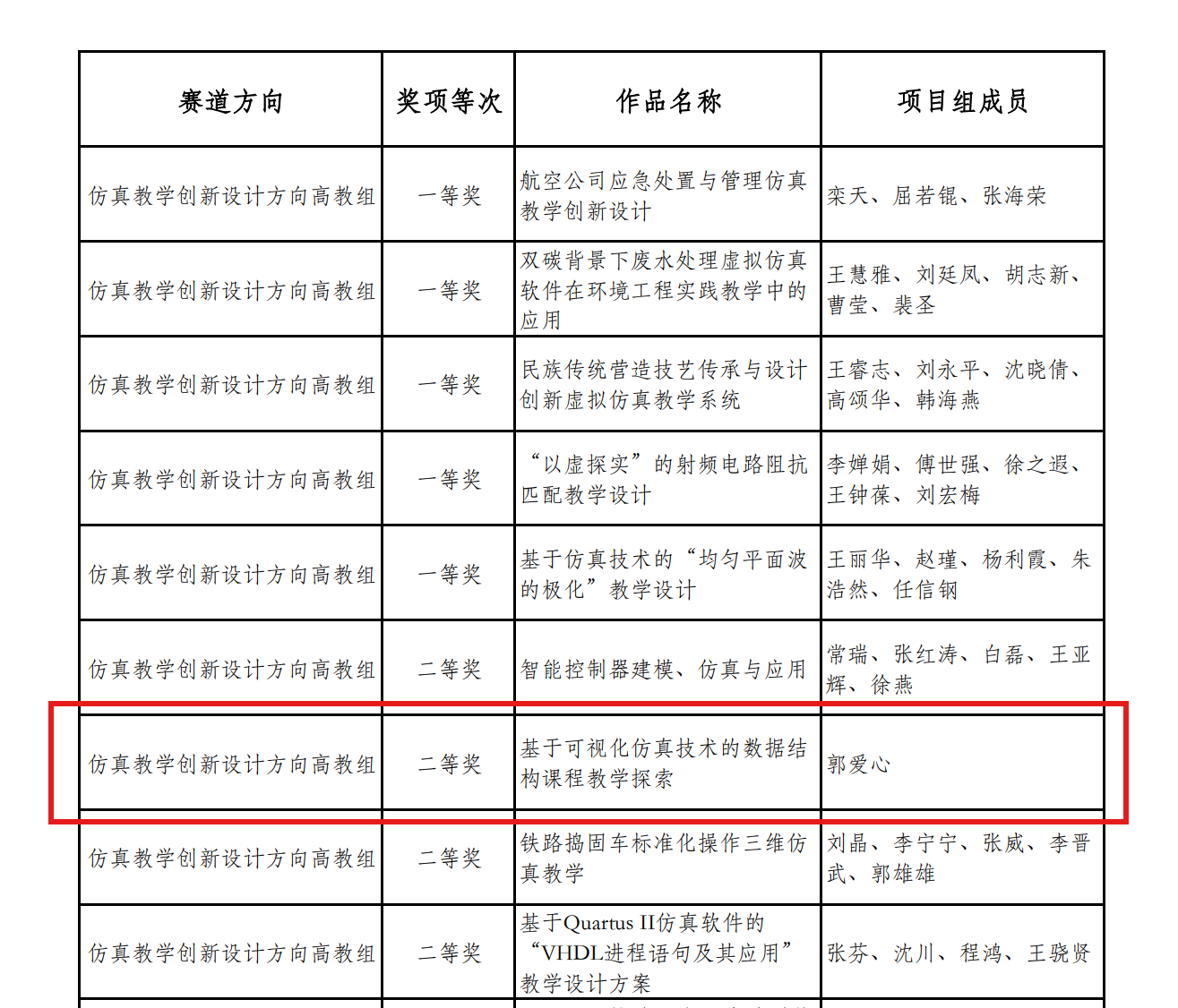 《基于可视化仿真技术的数据结构课程教学探索》积极探索了仿真技术与数据结构课程教学的深度融合,着力深化课程的内涵建设,为数字技术助力教学和创新人才培养积累了宝贵经验。