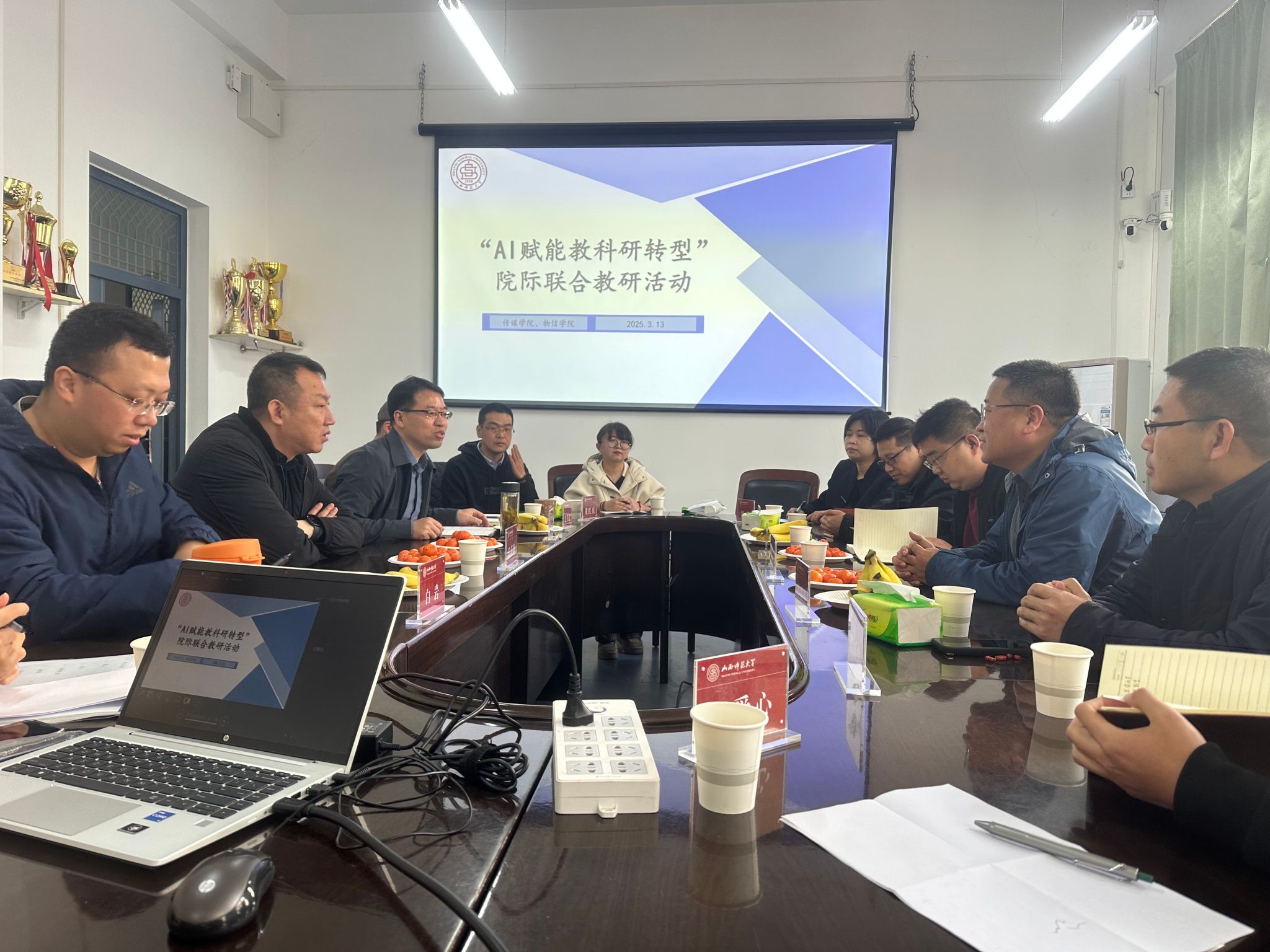 2025年3月13日上午,EMC易倍与传媒公司聚焦“AI赋能教科研转型”主题开展了院际联合教研活动。EMC易倍副经理韩建宁教授、副经理李俊生教授和传媒公司党委书记任茹新、副经理郝建国教授以及两院相关学科的教师参加活动。