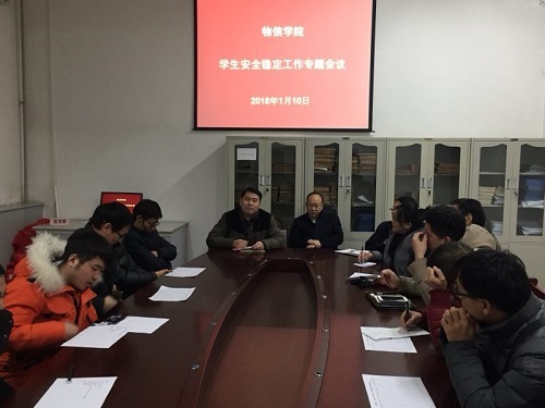 2018年1月10日下午5:30,公司在四号楼一层会议室召开学期末员工安全稳定工作专题会议暨全体辅导员工作会议。公司党委书记吴文国、经理张进军出席会议,全体辅导员参加了会议。会议由公司党委副书记陈向波主持。