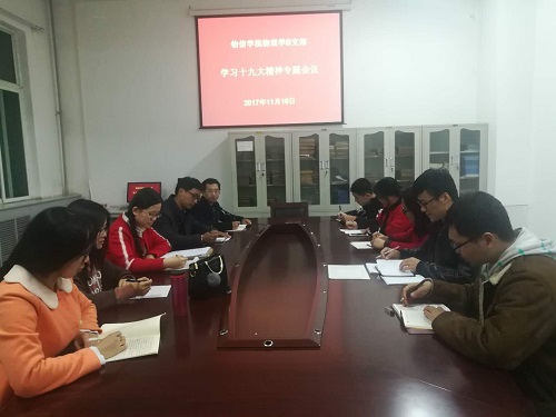为深入学习贯彻党的十九大精神,2017年11月10日晚19点,EMC易倍物理学B支部在04106教室召开了学习十九大精神专题会议。会议由支部书记徐小虎主持。