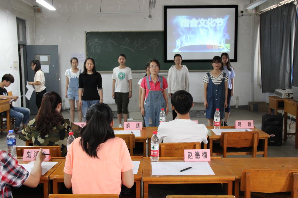 本次活动共分为"宿舍风貌比拼"、"宿舍才艺展示"、"舍友默契大比拼"三个环节。参与评分的评委有院员工会主席王强,礼仪队队长任国清,青协部长朱肖波,文艺部副部长刘济铭。在才艺展示中,有三个宿舍以视频的形式进行了展示,其中,6#321宿舍将视频拍成了新闻联播的形式,为我们介绍了手机的危害,创意性十足;6#436宿舍以PPT的形式为我们介绍了她们宿舍的装饰以及舍友间的深厚情意,并在最后为我们讲了一个她们之间的小故事,真实暖心;5#320宿舍以文化为题材,视频中包含了舞蹈,书法,插花等各种表演,丰富多彩。还有三个宿舍为现场展示,其中,5#419宿舍为诗朗诵,气势磅礴;5#320宿舍为舞蹈,精彩纷呈;5#418宿舍自编自演了一段舞蹈,趣味性十足,最终获得了此次活动的第一名。在“舍友默契大比拼”环节中,大家都用各自的方式为舍友传递了词语的意思,默契十足。现场气氛热烈,舍友之间配合默契,主持人主持灵活,极大调动了现场的积极性。