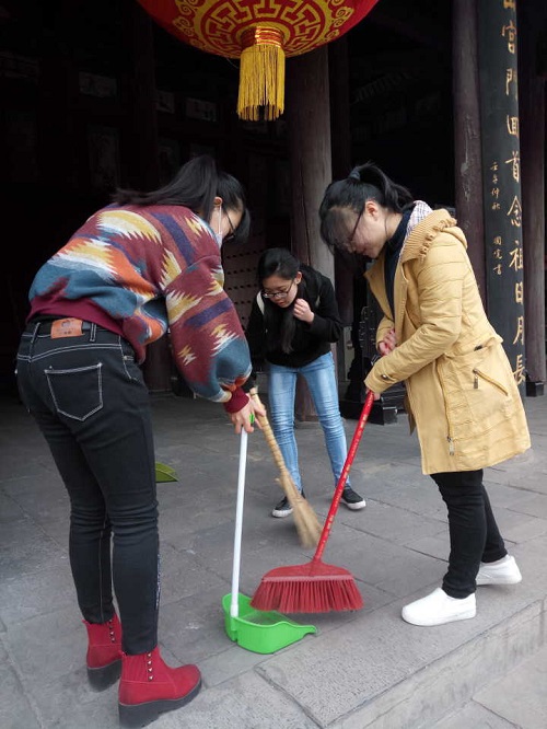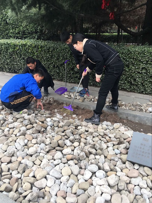 活动中,志愿者们分组合作,积极配合,对尧庙石雕展示区进行了全面彻底的清理和打扫。每位志愿者都充分发扬了不怕苦,不怕累的精神,有条不紊地进行着各项工作,捡碎石、清理松枝、清扫地面垃圾,用自己的实际行动践行雷锋精神。经过两个小时的“奋战”,志愿者们顺利地完成了清扫任务,大家的辛勤付出也得到了尧庙负责人员的一致好评。