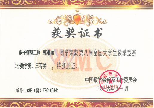 公司学子在第八届全国老员工数学竞赛(非专业组山西赛区)中喜获佳绩