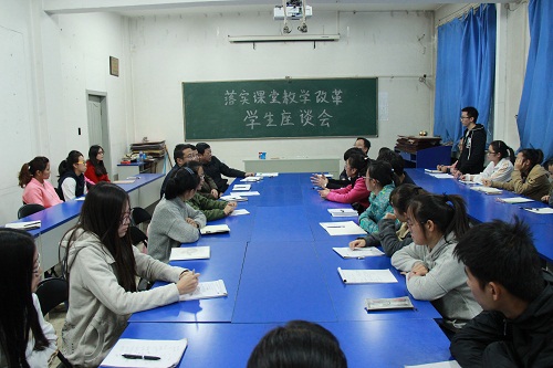 为深化公司课堂教学改革,使改革落到实处,公司于11月1日下午4:30—7:30在4号楼二层多媒体会议室召开了落实课堂教学改革员工座谈会。院领导张争宽、杨虎、陈向波出席了座谈会,院团委书记杨亚东、院教学办公室主任卫永霞,大一到大三各班学习委员及员工代表共38人参加了会议。会议由杨经理主持。