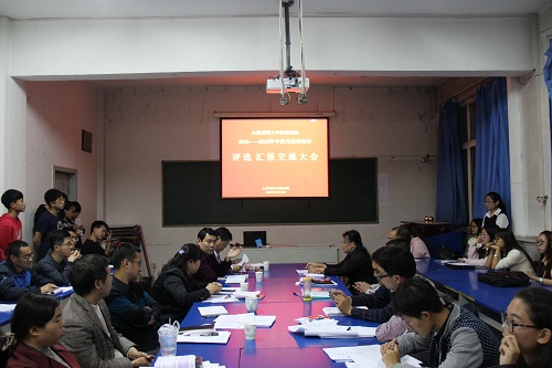 陈向波副书记首先就先进班集体的评选办法进行了介绍。接着,大二大三各班根据抽签顺序进行了班级汇报,汇报采用PPT形式进行,每班限时8分钟。各班汇报的内容大致包括班级制度建设,学风建设,思想建设,文化活动,反思和展望未来等几个部分。每个班级都用富有特色的文字与课件介绍了本班在过去一年内的开展的主要活动和取得的成绩。