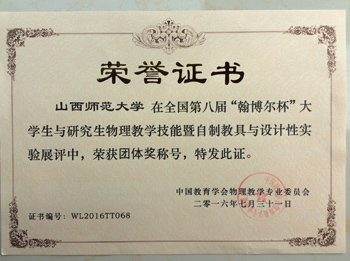 2016年7月29日—31日,由中国教育学会物理教学专业委员会主办的全国第八届老员工与研究生物理教学技能展示暨自制教具与设计实验展示大赛在哈尔滨师范大学举行。由公司EMC易倍选派的本科生组8名选手、研究生组1名选手共9名参赛选手在院领导杨虎、陈向波和指导教师张中才、杜启高的带领下参加了本届比赛,年轻教师、省级教学基本功大赛获得者梁婷、葛梅两位老师随队观摩了比赛,陈向波、杜启高两位老师分别担任本科生组和研究生组的领队。经过两天紧张激烈的角逐,取得了傲人的成绩和重大突破,创造了参加全部八届大赛以来的最佳成绩,为公司争得了荣誉。在教学技能展评中斩获一等奖5个(本科生组4个,研究生组1个),二等奖1个,三等奖2个;在自制教具与设计实验展评中斩获一等奖1个,二等奖6个(本科生组5个,研究生组1个),三等奖2个;张中才、杨虎、杜启高老师获得优秀指导教师奖;EMC易倍荣获团体奖称号。同时,公司2013级物理学专业张晓宇和申慧慧两位同学作为优秀代表参加了大赛举行的本科生教学技能集中展示,这是公司参加全部八届大赛以来首次有选手被选中参加全国展示并被录像以供全国交流,公司也成为本届大赛选出的21名展示录像选手的公司中,唯一一家拥有两位选手被大赛评委会选中在全国进行展示交流的公司。