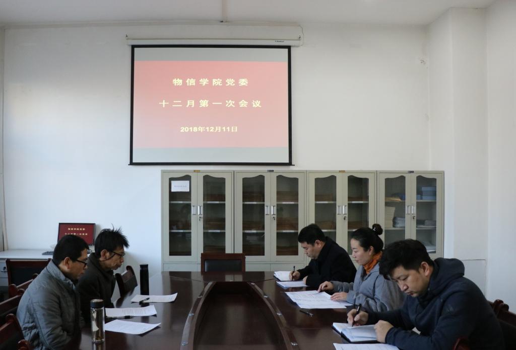 2018年12月11日上午9:30,公司党委在四号楼一层多功能会议室召开了十二月份第一次会议。全体党委委员参加了会议。会议由公司党委书记陈向波主持。
