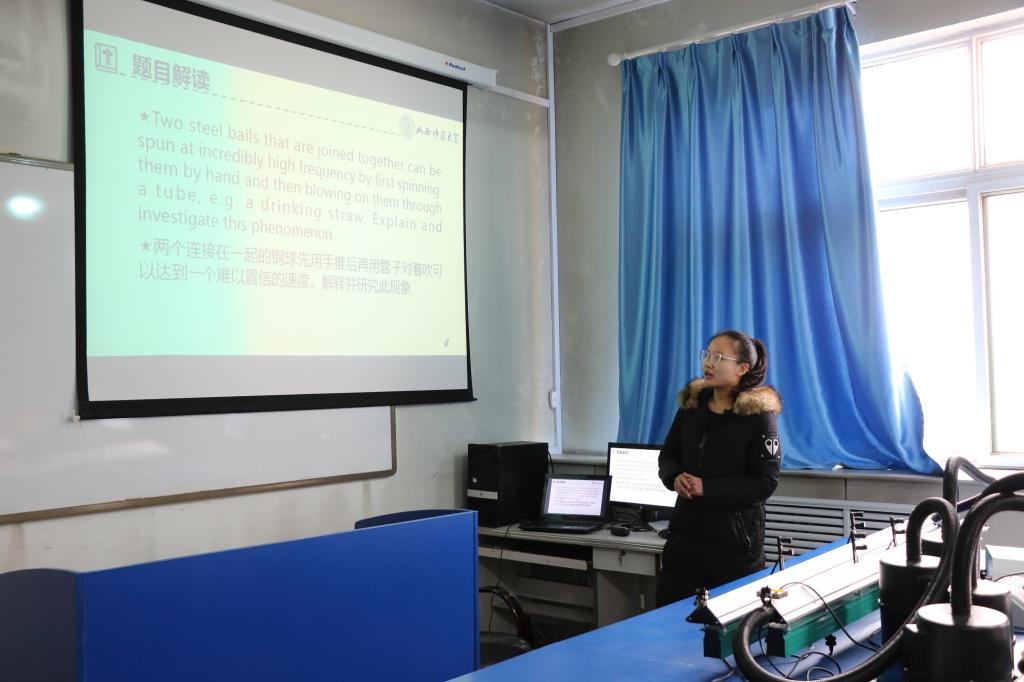 各参赛同学充分利用课余时间对竞赛题目进行了理论分析和实验验证。比赛过程中,同学们分别从题目解读、实验分析、理论依据、实验不足等方面以PPT讲解的形式展示自己的研究工作。部分同学还现场展示和操作了设计的实验装置以验证自己的结果。多数参赛同学的分析思路清晰,设计合理,阐述重点突出。在员工报告中以及全部比赛结束后,各位评委老师进行了精彩的点评。