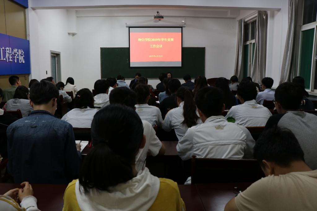 2019年4月23日晚上7:10,公司在四号楼二层多功能会议室召开了2019年员工竞赛工作会议。员工竞赛领导组副组长,公司党委副书记王玮、副经理侯俊华出席会议。竞赛总指导张中才,教学技能类竞赛负责教师穆林平,物理学术竞赛负责教师、物理系实验室主任程留永,电子大赛负责教师、物理系实验室主任李竹,创新创业类竞赛负责教师、院团委副书记岳文慧,大一到大三各班辅导员、班长、团支、学习委员参加会议。会议由副经理侯俊华主持。